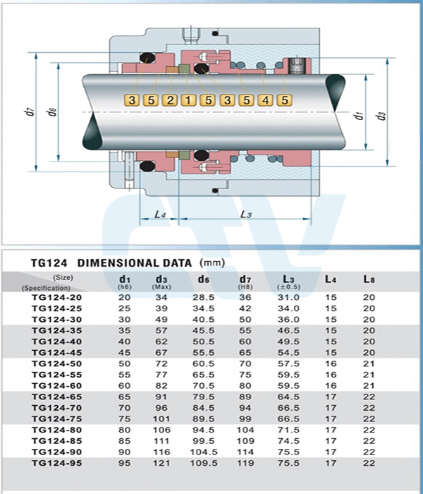 Bảng tra thông số kích thước phớt bơm