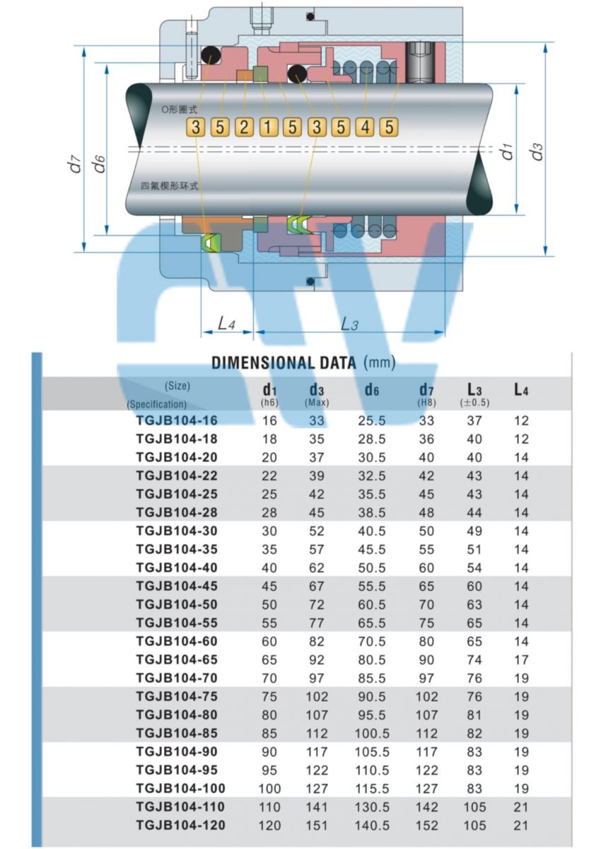 Phớt bơm dầu truyền nhiệt Type CTV/104-100 (Phớt cơ khí)