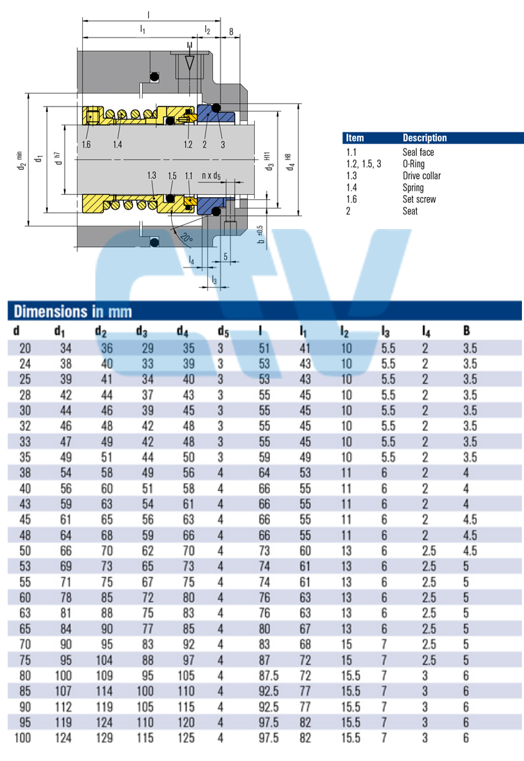 Phớt bơm hoá chất CTV/HA211 được sử dụng cho máy bơm ly tâm, phổ biến dùng cho bơm môi chất hoá chất.